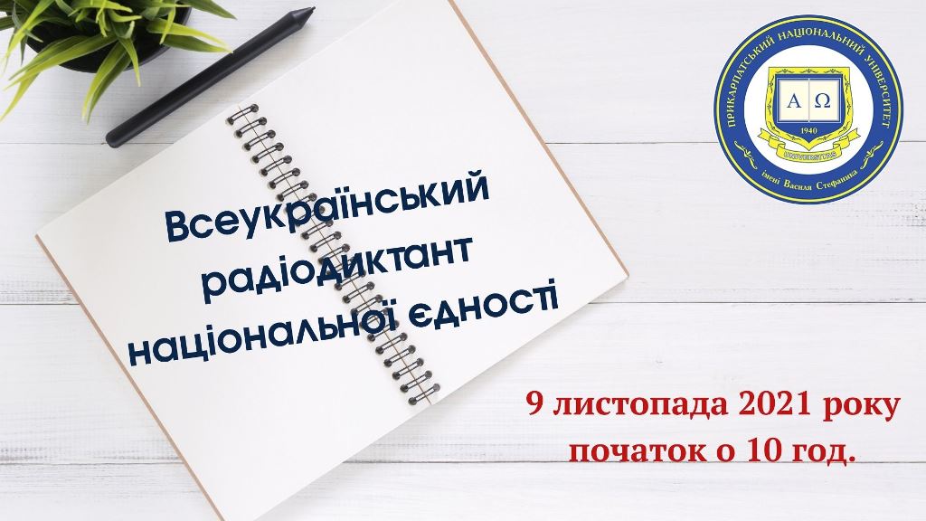 9 листопада викладачі, студенти, працівники Прикарпатського національного університету та всі охочі традиційно писатимуть Всеукраїнський радіодиктант національної єдності. Захід приурочений Дню української писемності та мови. Цьогоріч це ХХІ Радіодиктант національної єдності.